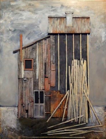 Parmi les acquisitions 2017, La Maison de Julien Leclou, collage et acrilyque sur carton, 50 x 65 cm, oeuvre de Migas Chelsky -
