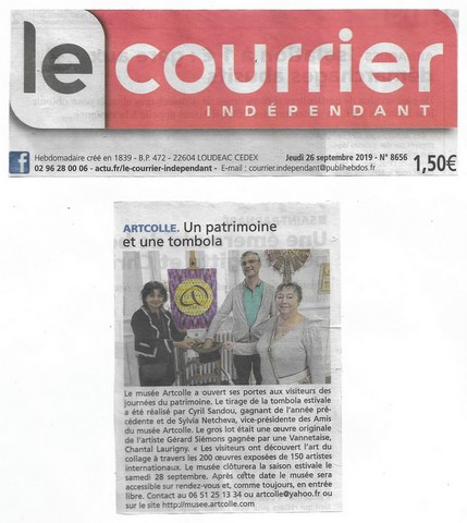 Artcolle – 27ème anniversaire. Le 17 octobre 1992 était créé à Paris, dans mon petit studio du XXème arrondissement, l’association Artcolle, avec pour principale utopie, de créer le premier musée consacré à l’art du collage. Pour cela, la devise instaurée s’inspirait de celle des Maîtres de jadis (c’est dire à quel point cela est éloigné de quelques milliards d’années-lumière de l’art et de la majorité des artistes actuels) : servir son art, avant de servir sa pomme. Merci à toutes & tous qui soutiennent l’association des amis du musée Artcolle – puisque l’utopie est devenue réalité – puisque tout est possible avec amour et passion – et que le musée Artcolle brille à présent de ces centaines d’œuvres, et de collagiste, à Plémet, capitale internationale de l’art du collage. S’adjoindront au musée, d’ici 2 ou 3 années (si Dieu me prête vie) , quelque 400 livres et catalogues d’expositions relatifs à l’art du collage, et introuvables – tel le catalogue original de la première exposition collective de l’art du collage, organisé par le poète Louis Aragon en mars 1930 – et des milliers d’autres documents – que j’ai recherché et amassé durant ces trente dernières années, suivant le principe : servir son art, plutôt que sa pomme, afin de créer au sein du musée Artcolle, le 1er centre de documentation sur l’art du collage.