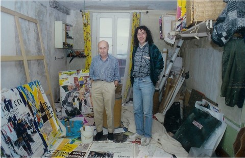 La première exposition des deux affichistes ou décollagistes intitulée « Loi du 29 juillet 1881 » aura lieu en 1957 chez Colette Allendy à Paris. Bien plus tard, à la fin des années 1990, le maître m’offrira un carton d’invitation original de l’exposition, qui est à présent exposé dans une des vitrines du musée Artcolle. Jacques Villeglé fera sienne, à travers le lacéré anonyme, la maxime d’André Breton : « un artiste doit vivre à l’ombre de son œuvre ». En 1960 le groupe de peintres des Nouveaux Réalistes est fondé par le peintre Yves Klein et le critique d'art Pierre Restany1 à l'occasion de la première exposition collective d'un groupe d'artistes français et suisses à la galerie Apollinaire de Milan. Une Déclaration constitutive du Nouveau Réalisme, qui proclamera « Nouveau Réalisme nouvelles approches perceptives du réel », sera signée par Arman, François Dufrêne, Raymond Hains, Martial Raysse, Daniel Spoerri, Jean Tinguely, Jacques Villeglé, Pierre Restany (qui a rédigé le manifeste) et Yves Klein dans l'atelier de ce dernier le 27 octobre 1960.