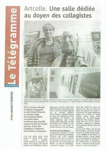 Samedi 1er juillet ouverture de la saison estivale du musée, et notre nouvelle salle d’exposition temporaire est enfin prête (1ère exposition temporaire : extrait du fonds Gérard Siémons, une vingtaine d'oeuvres présentées). A présent c’est donc 5 salles qui sont ouvertes au public, et toujours en entrée gratuite. Pour renflouer les finances de l’association des Amis du musée Artcolle (traumatisée après les dépenses de peinture enduit papier rails cimaises etc.) nous lançons notre tombola annuelle 1 ticket 1 euro 1 collage original à gagner !