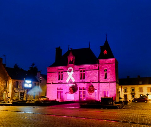 A l'heureuse initiative de la municipalité : Octobre Rose sur la façade du musée Artcolle.
