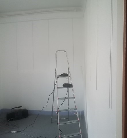Reprise de l’atelier bricolage dans la future 6ème salle d’exposition du musée Artcolle : perceuse, scie sauteuse, rails, vis et chevilles ont été conviées pour fixer les rails et cimaises nouvellement achetées. Merci aux adhérents de l’association Artcolle, ces amoureux de l’art du collage qui soutiennent concrètement le musée - sans eux rien ne serait possible.
